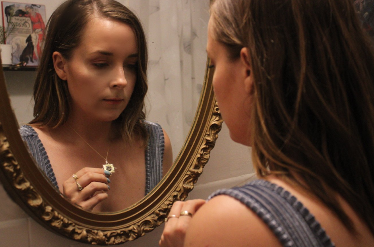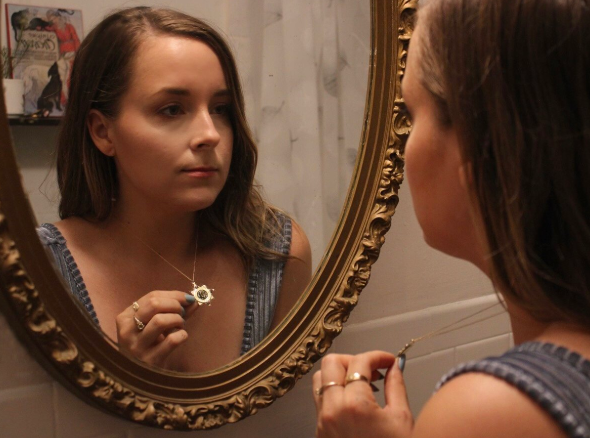 “In filth it will be found.” a saying from Carl Jung is engraved backwards so it can be read when you look in the mirror at your ‘shadow’ self.